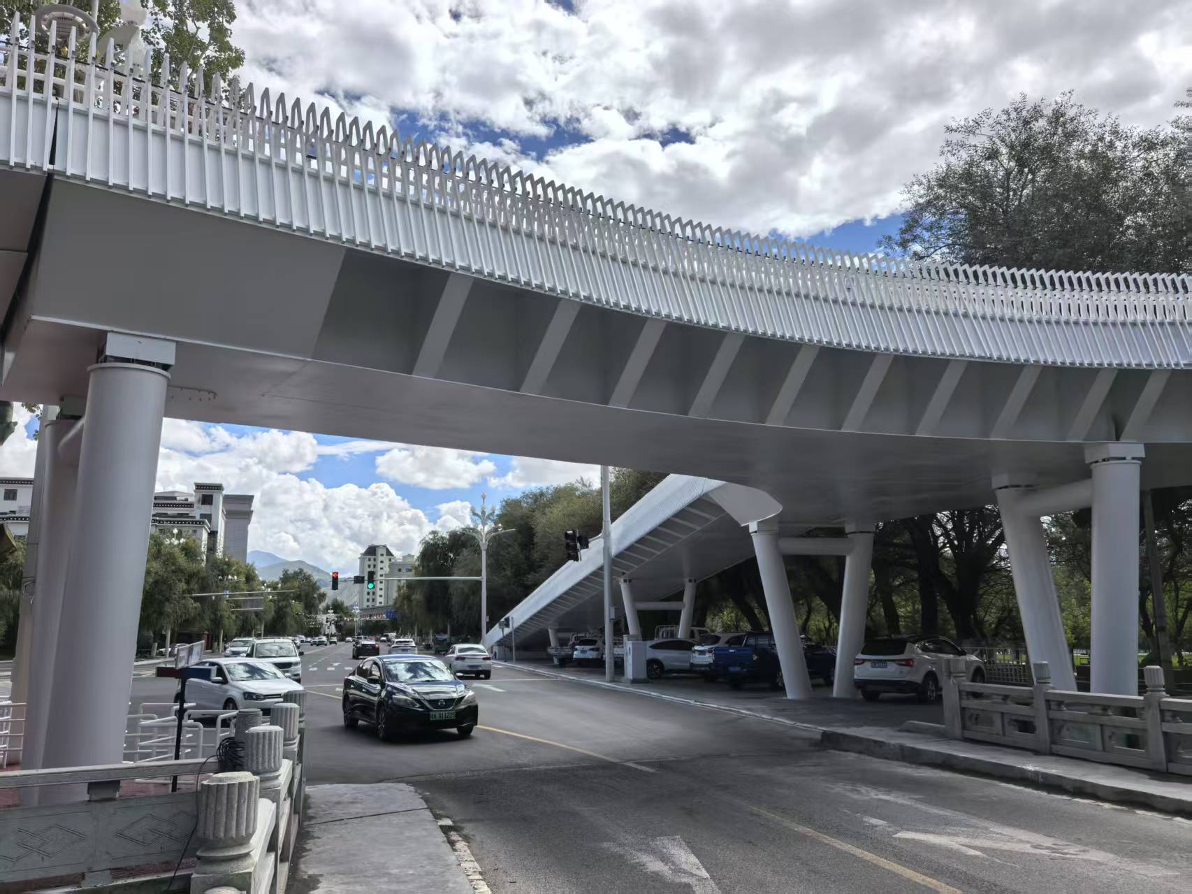 西藏正天為迎接自治區大慶出一份力,拉魯濕地鋼箱梁天橋提升改造項目正天鋼結構負責主體鋼結構和欄桿